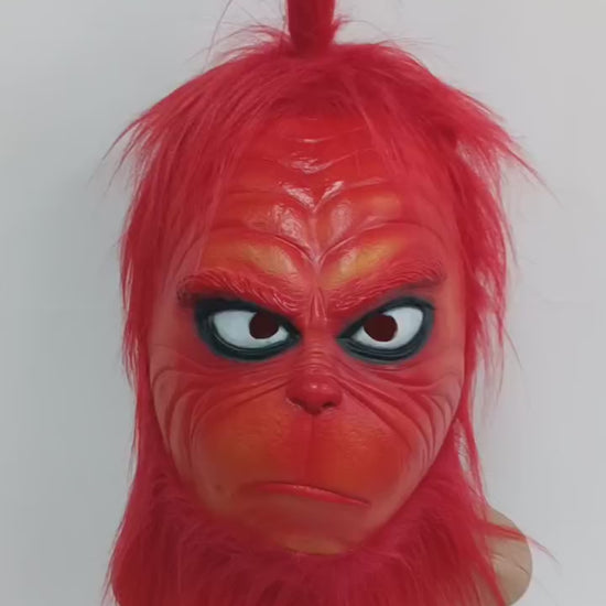 The Red Grinch Xmas Latex Mask Christmas Cosplay Furry Fur Party Costume